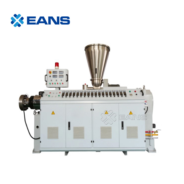 Двухшнековый экструдер широко используется для изготовления полых панелей из ПВХ, дверных досок из ДПК, мраморных листов из ПВХ, пенопластовых плит из ДПК, труб из ПВХ, кромок из ПВХ, угловых планок из ПВХ, древесно-пластиковых композитных плит, напольных покрытий из SPC и других пластиковых листов.Eans Machinery является профессиональным производителем экструзионных машин для пластика. Приветствуем ваш запрос для получения более подробной информации.